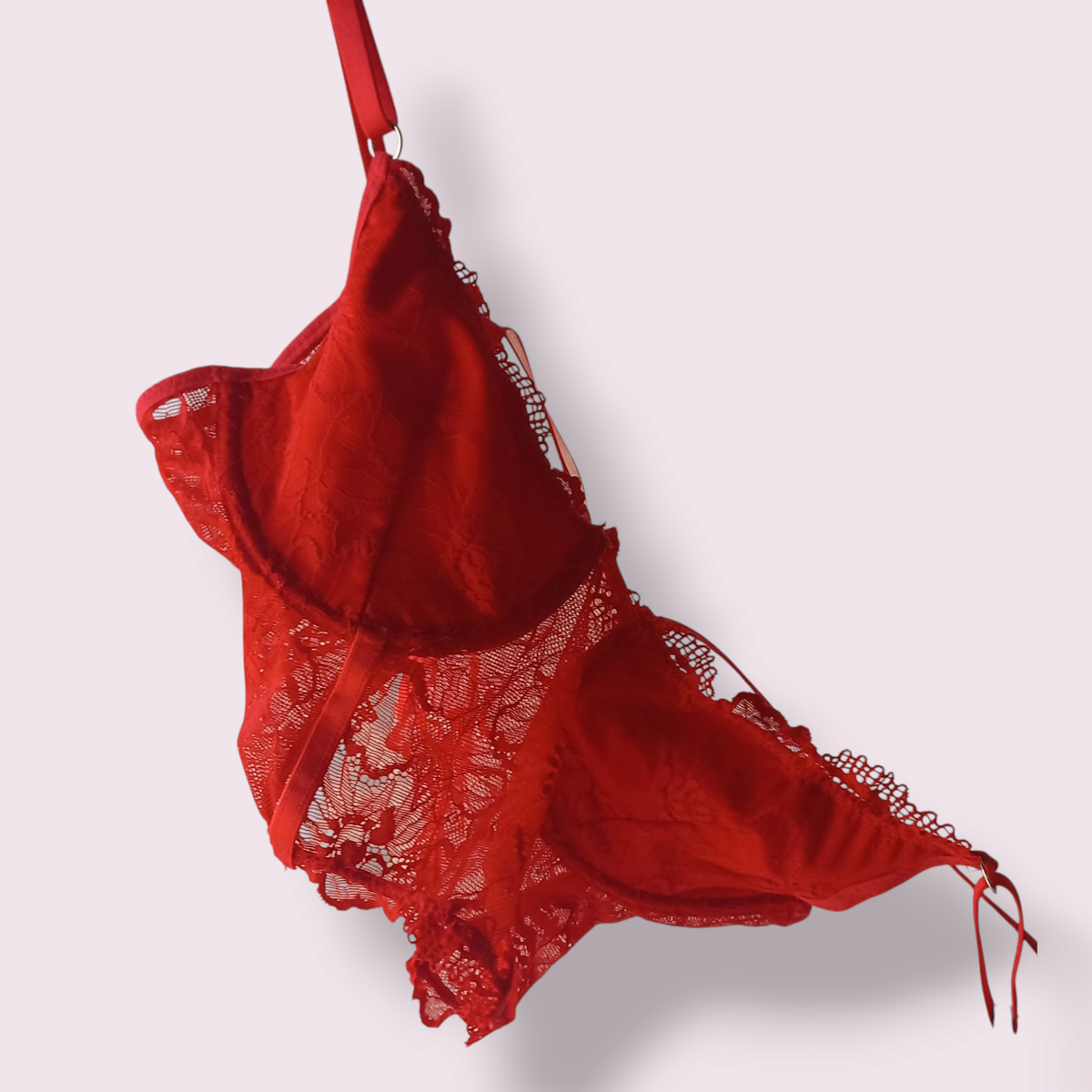 Bustier de puntilla de encaje. Taza con arco forrada con algodón. Espalda ajustable