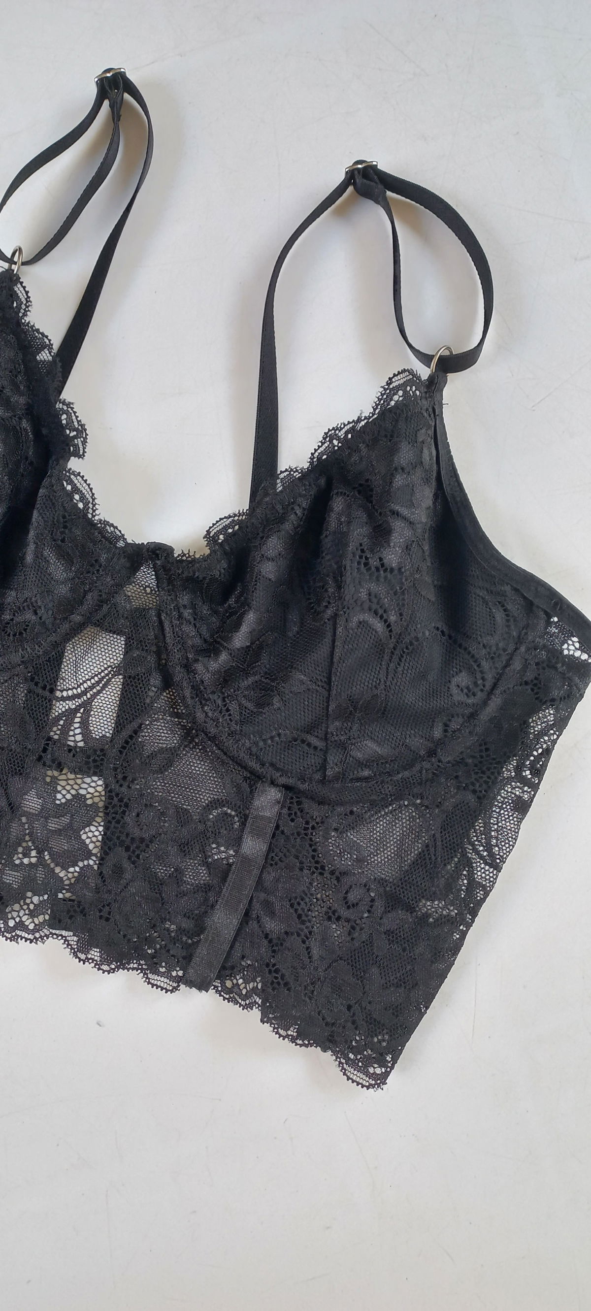 Bustier de puntilla de encaje. Taza forrada con algodón, arco y espalda regulable