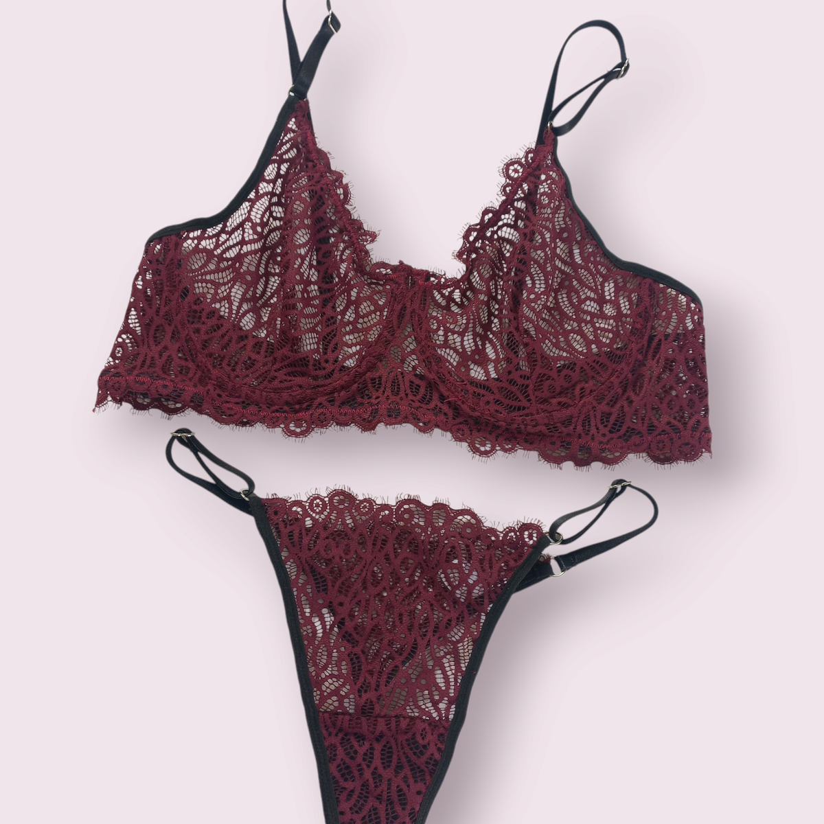Corpiño con arco en conjunto con less regulable de puntilla de encaje