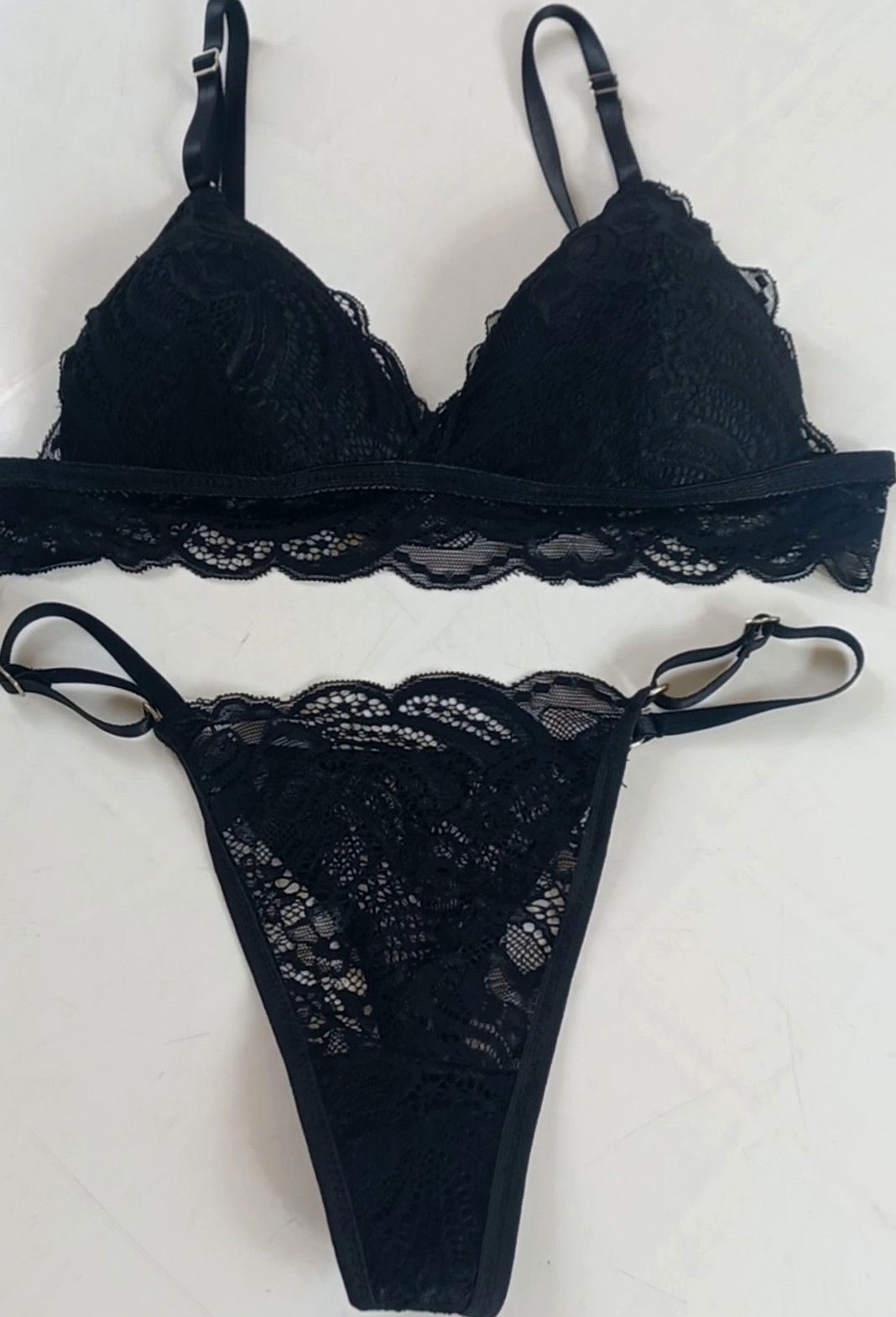 Corpi con taza soft triángulo, con cintura de puntilla en conjunto con una less regulable de puntilla