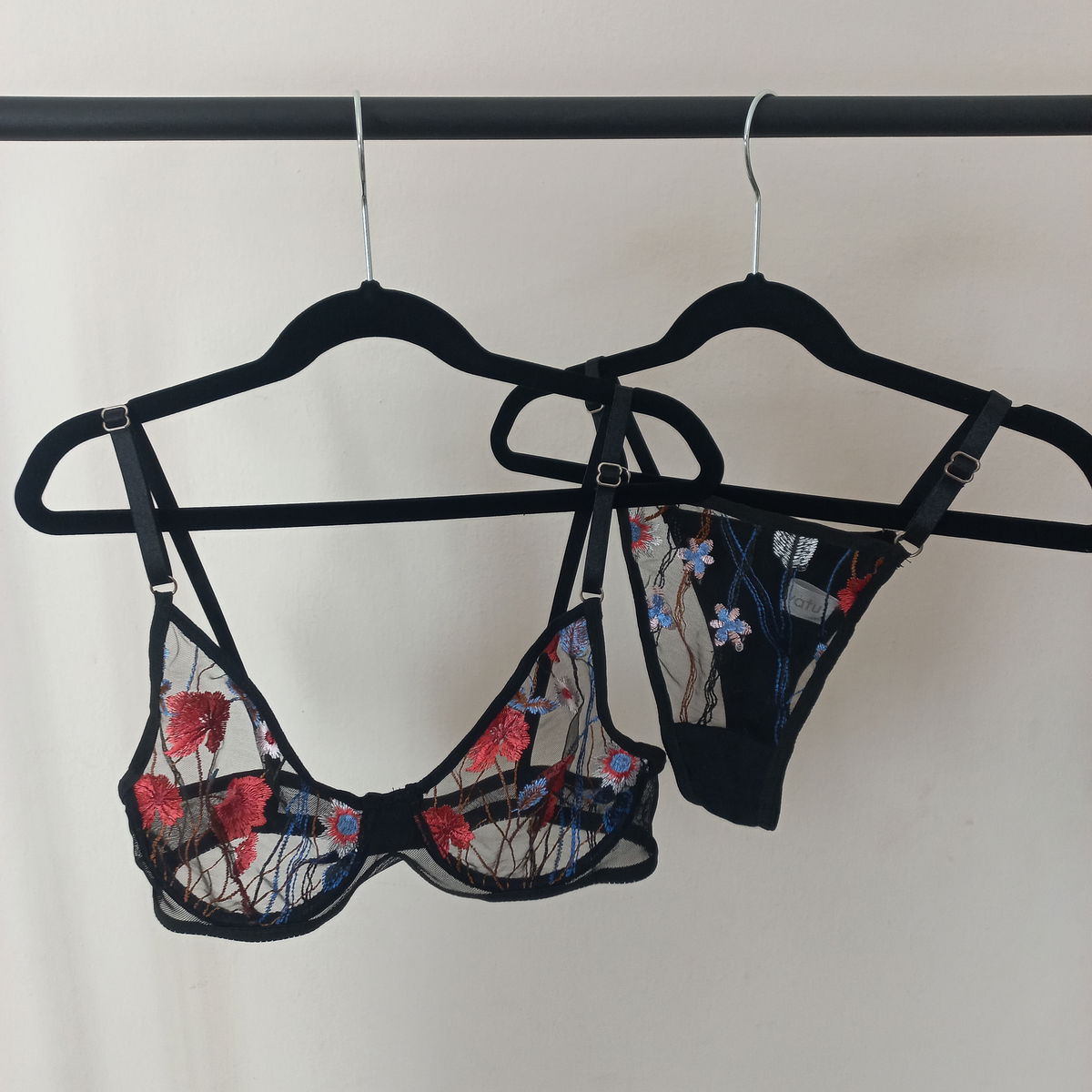 Corpiño con arco confeccionado en microtul bordado en conjunto con less regulable