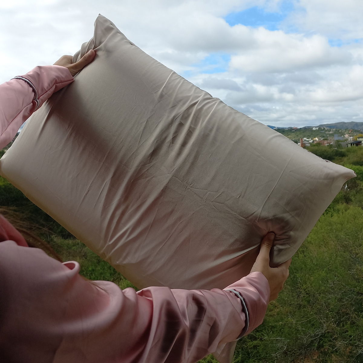 Funda de almohada confeccionada en satén para prevenir el frizz